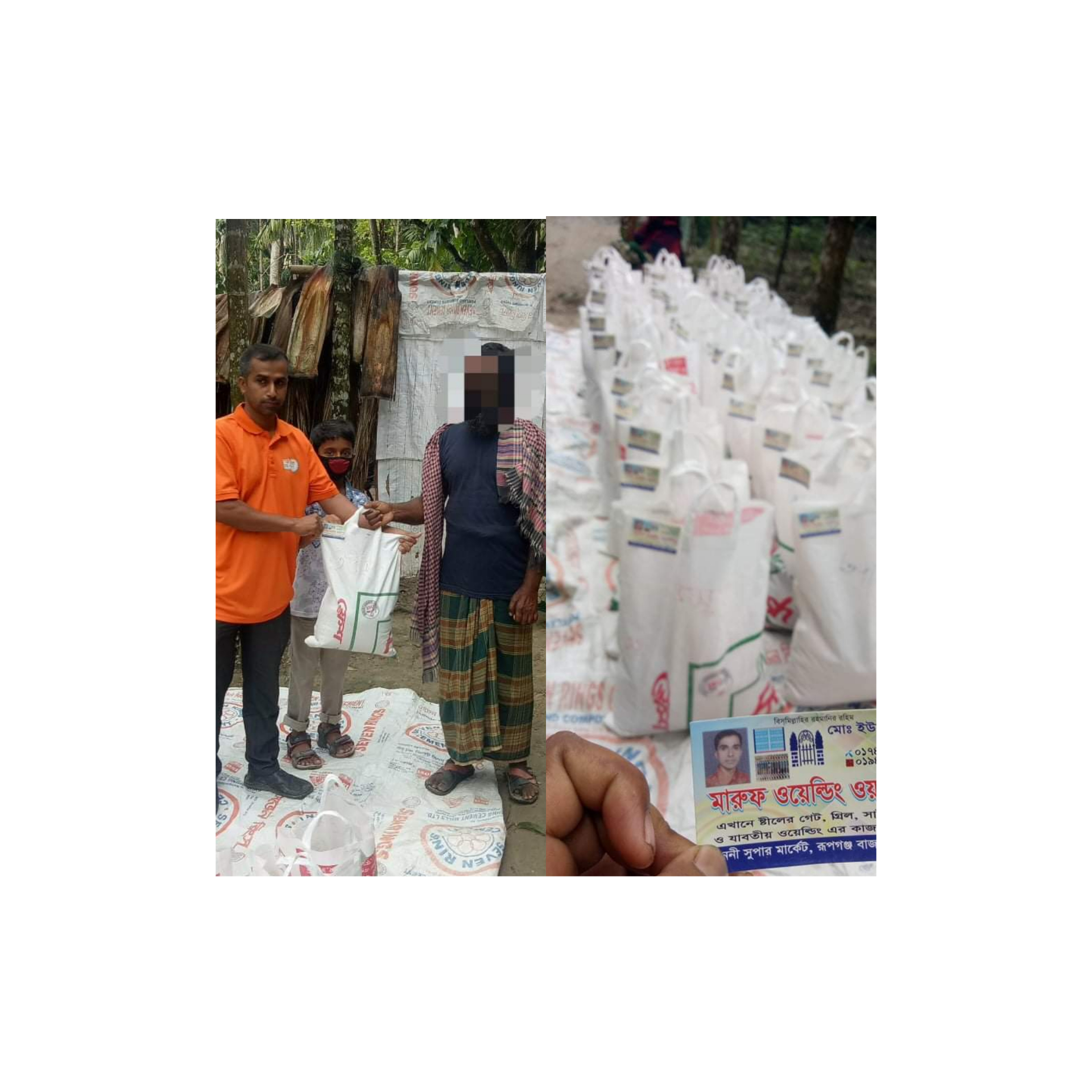 তখনই আমি সিদ্ধান্ত নিলাম আমি অামার এলাকার কিছু মানুষের মধ্যে ত্রাণ বিতরণ করব তাই আমার সামর্থ্য এর মধ্যেই কিছু মানুষদের জন্য চাউল, অালু লবন,সেমাই, ডাউল দিয়ে 50 জন মানুষদের সহযোগিতা করলাম।