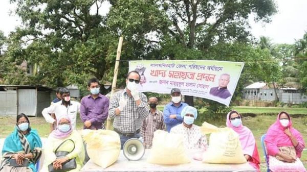 দেশ যেখানে স্বেচ্ছায় বন্দি,সাধারণ মানুষ নিজ নিজ অবস্হান থেকে সামাজিক দুরত্ব বজায় রেখে গৃহবন্দী। অঘোষিত যুদ্ধ, তবে নেই কোন সামরিক মহড়া, নেই কোন ট্যাংক ও বোমার শব্দ, নেই কোন বিমানের শব্দ, তারপরও জনমনে চরম উত্তেজনা ও আতংক। এই ভয় বা আতংক কোন যুদ্ধের নয় একটি মাত্র ভাইরাসের। কোভিড১৯- করোনা ভাইরাস, এমন একটি সংক্রমণ যেটির নিরাময়ের কোন ঔষধ এখনও আবিষ্কৃত হয়নি।এটি এমন এক ভাইরাস একজন হতে বহুজনে সংক্রমিত হয়।যার ফলে দেশের মানুষ খুলতে পারতেছে না দোকানপাট ব্যবসা প্রতিষ্ঠান,বাজার খরচ করতে পারতেছে না সাধারণ জনতা। অনেকে হয়ে পড়েছে কর্মহীন, রোজগার শুন্য।এমন অবস্থায় অনেকে গৃহে বন্দি অবস্থায় অনাহারে দিনাতিপাত করতেছে।সেই সকল মানুষের পাশে আশীর্বাদ হয়ে সহায়তার জন্য সবার আগে ছুটে আসেন বীরমুক্তিযোদ্ধার সন্তান হাতিবান্ধা উপজেলা আওয়ামী লীগের সাধারণ সম্পাদক পাটগ্রাম-হাতিবান্ধার সাংসদ পুত্র মাহমুদুল হাসান সোহাগ। পাটগ্রাম-হাতিবান্ধা দুই উপজেলায় সমান ভাবে দিনরাত কর্মহীন অসহায় মানুষের পাশে শাকসবজি, চাউল,আলু,ডাল,তেল,সাবান,লবন,পিয়াজ,সেমাই, মুড়ি,চিনি,আটা,চিড়া গুড়,ইফতারি সহ বিভিন্ন খাদ্য সামগ্রী পৌছে দিচ্ছেন নিজ উদ্যোগে অসহায় মানুষের বাসায়।তার এই মহানুভবতা দেখে দুই উপজেলার মানুষ বেশ খুশি। মাহমুদুল হাসান সোহাগ এর সাথে কথা বলে জানা যায়- তিনি বলেন আমার বাবা বীরমুক্তিযোদ্ধা সাবেক মন্ত্রী জেলা আওয়ামী লীগের সম্মানিত সভাপতি লালমনিরহাট১-(পাটগ্রাম-হাতিবান্ধা) সংসদীয় আসনের বার বার নির্বাচিত সংসদ সদস্য মাটি ও মানুষের নেতা মোতাহার হোসেন এমপি মহোদয়ের অনুপ্রেরণায় সাধারণ মানুষের বিপদে ও দুর্দিনে পাশে দাড়ানোর চেষ্ঠা করতেছি মাত্র। তিনি আরও বলেন দুই উপজেলার মানুষের পাশে দাড়াতে পেরে আমি নিজে ধন্য মনে করছি।বিপদে পাশে দাড়াতে পেরে আমি স্বার্থক।এই এলাকার অনাহারে থাকা মানুষ গুলোর খাবারের ব্যবস্হা করেই তারপর আমি খাবো,আমার এই এলাকার কোন মানুষকে না খেয়ে মরতে দিবো না।ত্রান পাওয়া বেশ কিছু মানুষের সাথে কথা বলে জানা যায়- তারা বলেন এমপির বেটা হামার পাশত আসি দাড়াইছে,দেয়ছে ইফতার ও চাউল,ডাল,তেল,সাবান,শাকপাতারী,হামা খুব খুশি।দেশ লকডাউন হওয়ার পর থেকে মাহমুদুল হাসান সোহাগ নিজে ছুটে চলেছেন আজ অব্দি সাধারণ মানুষের ঘরে ঘরে খাদ্য সামগ্রী নিয়ে।তার এই ত্রান বিতরন চলমান থাকবে।