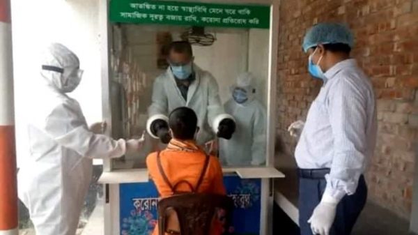 গাজীপুরের চান্দনা স্থুল এন্ড কলেজ মাঠে করোনা ভাইরাসের নমুনা সংগ্রহ বুথ চালু করেছে জেলা প্রশাসন