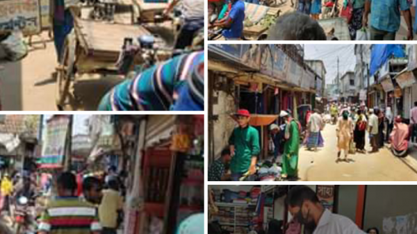 এ সুযোগে বাজারে চাঁদের হাট বসেছে ! ফলে,সাধারণ মানুষের মধ্যে করোনার ঝুঁকি অনেক বেড়ে গেছে বলে সচেতন মহলের দাবি।