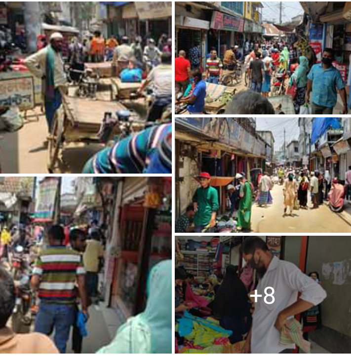 লকডাউনের মধ্যে সীমিত পরিসরে দোকানপাট খুলে দেওয়ার পর এখানকার স্বাস্থ্যবিধি ভেঙ্গে পড়েছে এবং বাড়ছে করোনার ঝুঁকি।