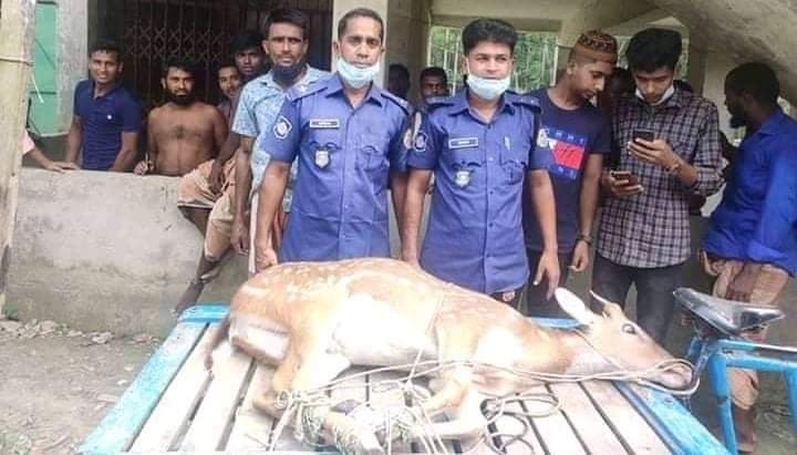 তারপর টলারে করে হরিণ টাকে নিয়ে আসেন মির্জাকালু পুলিশ ফাঁড়িতে জেলেদের ধারণা হরিণ টা নদীর কুলে পানি খেতে আসলে নদীর স্রোতে হরিণ টা চলে আসে নদীর মাজ খানে।