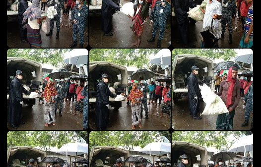 নৌবাহিনীর ত্রাণ সামগ্রীর মধ্যে ছিলো, আটা, চাউল, সোলা, সুজি, আধা কেজি লবন, পিয়াজ, আধা লিটার সয়াবিন তৈল ও এক প্যাকেট বিস্কিট।