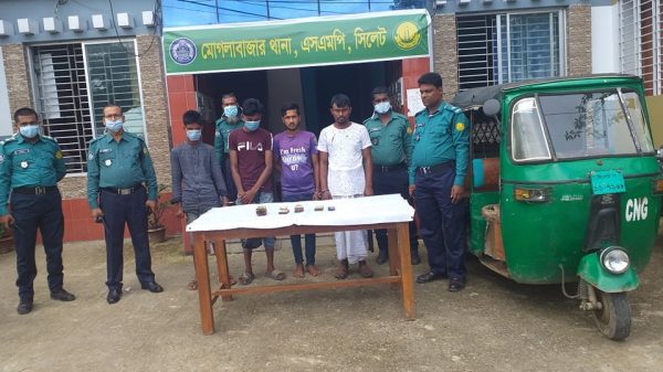 সিলেট মেট্রোপলিটন এলাকার মোগলাবাজারে বিক্রয় ম্যানেজারের কাছ থেকে ১ লক্ষ ১৬ হাজার ৭ শত টাকা ও মোবাইল ফোন ছিনতাই হয়েছে। গতকাল রোববার (২১ জুন) রাত সাড়ে ১১টায় মোগলাবাজার ধানাধীন কুচাই পশ্চিমভাগ এলাকার সিলেট-গোলাপগঞ্জ সড়কে এই ছিনতাইয়ের ঘটনা ঘটে। খবর পেয়ে দ্রুত অভিযান চালিয়ে চার ছিনতাইকারী আটক করে পুলিশ এবং তাদের কাছ থেকে ছিনতাইয়ের ১ লক্ষ ১৬ হাজার ৭শত টাকার মধ্যে ৪ হাজার ১০ টাকা ও মোবাইল ফোন উদ্ধার করে। এসময় আরেক ছিনতাইকারী বাকি টাকা নিয়ে পালিয়ে যায় এবং তাকে আটকের জোর তৎপরতা চালাচ্ছে পুলিশ। আজ সোমবার (২২ জুন) সিলেট মেট্রোপলিটন পুলিশের অতিরিক্ত উপ-পুলিশ কমিশনার (মিডিয়া এন্ড কমিউনিটি সার্ভিস) মো. জেদান আল মুসা সংবাদবিজ্ঞপ্তির মাধ্যমে জানান, গতকাল রোববার (২১ জুন) রাত সাড়ে ১১টায় মোগলাবাজার ধানাধীন কুচাই পশ্চিমভাগ এলাকার সিলেট-গোলাপগঞ্জ সড়কে এক বিক্রয় ম্যানেজারের কাছ থেকে ১ লক্ষ ১৬ হাজার ৭শত টাকা ও মোবাইল ফোন ছিনিয়ে নেয় ছিনতাইকারীরা। পরে তারা সিএনজি অটোরিকশাযোগে পালিয়ে যায়। খবর পেয়ে মোগলাবাজার থানার অফিসার ইনচার্জ আখতার হোসেন থানার টহলরত পুলিশ টিমগুলোকে এ বিষয়ে দ্রুত অভিযান চালাতে নির্দেশ প্রদান করেন। এর ভিত্তিতে মোগলাবাজার থানার এসআই রাজীব কুমার রায়, এএসআই আব্দুল জলিল, এএসআই মনজুর হোসেন, এএসআই ওবাইদুল্লা ও কর্তব্যরত পুলিশ সদস্যরা ঘটনাস্থল এলাকায় সড়কের সকল সিএনজি অটোরিকশা তল্লাশি করতে থাকেন এবং এর সূত্র ধরে কুচাই পশ্চিমভাগ আবাসিক এলাকা হতে ছিনতাইকাজে ব্যবহৃত সিএনজি অটোরিকশা ও ছিনতাইকাজের সহযোগী অটোরিকশা চালক আব্দুস সামাদ (২০)-কে আটক করেন। আটক সামাদ গোলাপগঞ্জ থানার কোতয়ালপুর (কটালপুর) গ্রামের নূর উদ্দিনের ছেলে। সে বর্তমানে দক্ষিণ সুরমার লাউয়াই রায়গ্রামের জহুরুল মিয়ার বাড়িতে ভাড়াটে থাকে। পরে পুলিশের জিজ্ঞাসাবাদে আব্দুস সামাদ ছিনতাইয়ের সাথে সম্পর্কিত সকল তথ্য প্রদান করে। বিষয়টি ওসি আখতার হোসেন তাৎক্ষনিক সিনিয়র সহকারী পুলিশ কমিশনার পলাশ রঞ্জন দে-কে অবগত করেন এবং শুরু হয় ছিনতাইকারী গ্রেফতারের অভিযান। একে একে গ্রেফতার করা হয় এ ছিনতাইকাজে জড়িত আরও ৩ ছিনতাইকারীকে। তারা হচ্ছে- দক্ষিণ সুরমার গালিমপুর এলাকার জমসেদ মিয়ার ছেলে পলাশ মিয়া (৩২), ব্রাহ্মণবাড়ীয়া জেলার নাসিরনগর থানার ডরমন্ডল গ্রামের শহিদ মিয়ার ছেলে হাবিব হোসেন (১৮) ও সিলেট জেলার গোলাপগঞ্জ থানার ফুলবাড়ী ভুইটেক গ্রামের লিলু মিয়ার ছেলে কামরান আহমদ বাবু (১৯)। হাবিব বর্তমানে দক্ষিণ সুরমার দক্ষিণ খোঁজারখলা এলাকার নেনাই মিয়ার কলোনিতে এবং কামরান একই এলাকার দুলাল মিয়ার কলোনিতে থাকে। আটককালে তাদের কাছ থেকে ছিনতাইয়ের ১ লক্ষ ১৬ হাজার ৭শ
