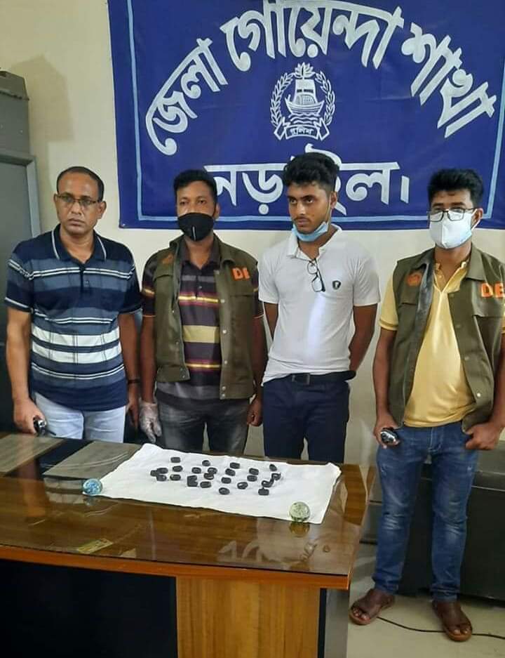 পরে তাকে জেলা গোয়েন্দা শাখা নড়াইল এ নিয়ে গিয়ে বিশেষ কায়দায় তার পেটের ভিতর থেকে কালো টেপে দিয়ে প্যাচানো ২৪ টি কালোজামের মত ট্যাবলেট এর ভিতর থেকে ১২০০ পিচ ইয়াবা উদ্ধার করা হয়।