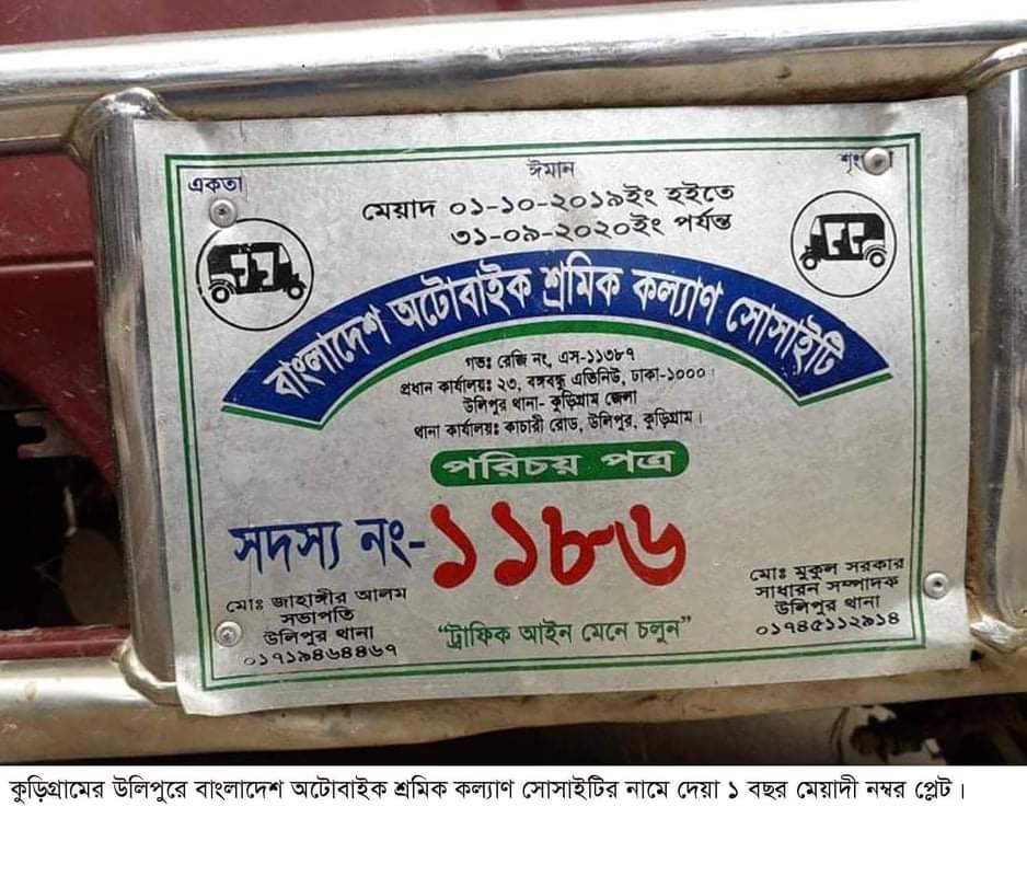কুড়িগ্রামের উলিপুরে চাঁদাবাজি ও অটো চুরির অভিযোগে পৌর শ্রমিক লীগের সভাপতিসহ দুইজনকে গ্রেপ্তার করেছে পুলিশ। এ ঘটনায় পৌর আওয়ামীলীগের সভাপতিসহ ৫জনের বিরুদ্ধে উলিপুর থানায় মামলা দায়ের করেছে ভুক্তভোগী এক অটো চালক। মামলার আসামীরা দীর্ঘদিন থেকে বাংলাদেশ অটোবাইক শ্রমিক কল্যাণ সোসাইটির নামে অভিনব কৌশলে উপজেলার কয়েক হাজার অটোচালকের কাছ থেকে প্রায় সাড়ে ১৫ কোটি টাকা চাঁদাবাজির মাধ্যমে হাতিয়ে নিয়েছেন।