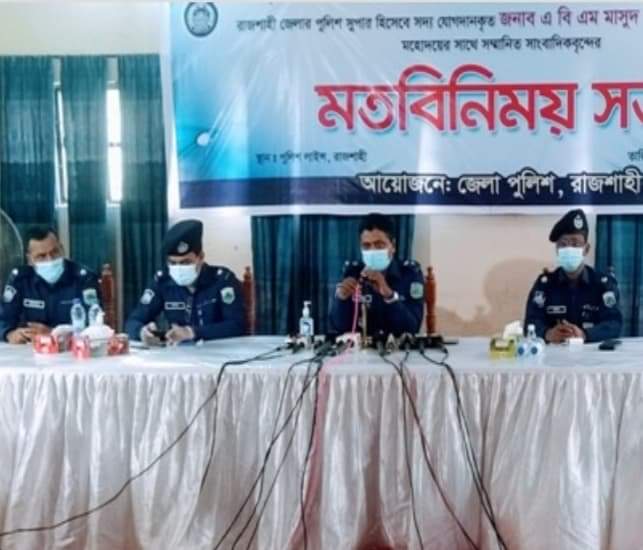 রাজশাহীর নতুন পুলিশ সুপার (এসপি) এবিএম মাসুদ হোসেন বলেছেন, আমাদের যে কোনো কাজ হবে পেশাদারিত্ব, দেশপ্রেম এবং অবশ্যই দক্ষতার সঙ্গে।আমরা রাজশাহীর আট থানার আইনশৃঙ্খলার উন্নয়নে সাংবাদিকদের সহায়তা চাই।আমরা দুর্নীতি, মাদক এবং সন্ত্রাসমুক্ত রাজশাহী গড়তে চাই।তিনি বলেন, সন্ত্রাসী যেই হোক না কেন তার পরিচয় সন্ত্রাসী।কোন দল কোন মত আমরা চিনি না।আমরা তাদের বিরুদ্ধে কঠোর ব্যবস্থা নেব।আর মাদকের ব্যাপারে সরকারের ‘জিরো টলারেন্স’ নীতি আছে।সেটার পরিবর্তন হয়নি।আমরাও মাদকের বিরুদ্ধে জিরো টলারেন্স নীতিতে কাজ করব।এসপি বলেন, রাজশাহীর একটা সমস্যা আছে।এতদিন দূর থেকে জেনে এসেছি যে, এখানে এক সময় জঙ্গিবাদের উত্থান ঘটেছিল।সেটা যদিও এখন নিয়ন্ত্রণে আছে, তবে এদের বিশ্বাস করা যায় না।এরা যে কোনো সময় আবার মাথাচাড়া দিয়ে উঠতে পারে।এখানে সর্বহারা নামে যে একটা গ্রুপ ছিল তাদেরও এখন আর প্রভাব নেই।যে কোনো সন্ত্রাসী ঘটনার ক্ষেত্রে দলমত নির্বিশেষে আমাদের অবস্থান থাকবে একদম কঠোর মতবিনিময়কালে অতিরিক্ত পুলিশ সুপার মাহমুদুল হাসান, মুহাম্মদ মতিউর রহমান সিদ্দিকী, সুমন দে ও ইফতেখায়ের আলমসহ রাজশাহীতে কর্মরত বিভিন্ন গণমাধ্যমের কর্মীরা উপস্থিত ছিলেন।