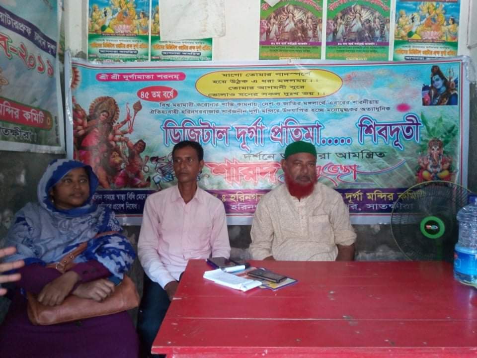 সাতক্ষীরা শ্যামনগর উপজেলার হরিনগর বাজারে শারদীয় দুর্গাপূজা উদযাপন পরিচালনা কমিটির প্রস্তুতি সভা অনুষ্ঠিত হয়েছে । গতকাল সোমবার বেলা ১০ টায় শারদীয় দুর্গাপূজা উদযাপন কমিটির কার্যালয়ে এ সভা অনুষ্ঠিত হয় ।শারদীয় দুর্গাপূজা উদযাপন পরিচালনা কমিটির সভাপতি বাবু অসিত কুমার মল্লিকের সভাপতিত্বে সভায় , প্রধান অতিথি হিসেবে উপস্থিত ছিলেন মুন্সিগঞ্জ ইউপি চেয়ারম্যান আলহাজ্ব আবুল কাশেম মোড়ল । প্রধান অতিথি আলহাজ্ব আবুল কাশেম মোড়ল তাহার মূল্যবান বক্তব্যে বলেন , ধর্ম যার যার উৎসব সবার বর্তমান সময়ে করোনাভাইরাস ( কোভিদ ১৯ ) এর কারণে , সরকারি নির্দেশনা এবং স্বাস্থ্যবিধি মেনে আমাদের পূজা উদযাপনের কার্যক্রম পরিচালনা করতে হবে । মাক্স বিহীন কাউকে প্রতিমা দর্শন করতে দেয়া যাবে না , আমাদের প্রশাসনিক ব্যবস্থা এবং নিরাপত্তা ব্যবস্থা জোরদার করতে হবে , কোনভাবে বিশৃঙ্খলা না ঘটে সেদিকে আমরা সবাই খেয়াল রাখব , বিগত ৪৪ বছরে আমাদের হরিনগর বাজারে পূজা মন্ডপের একটা সুনাম আছে সেটা যেনো আমরা ধরে রাখতে পারি । উক্ত সভায় বিশেষ অতিথি হিসেবে উপস্থিত ছিলেন হরিনগর হাট বাজার কমিটির সেক্রেটারি জাবেদ আলী গাজী , আরো উপস্থিত ছিলেন মুন্সিগঞ্জ ইউনিয়নের মহিলা ইউপি সদস্যা সেলিনা সাঈদ ,৬ নং ইউপি সদস্য শেখ মোস্তফা কামাল ,৯ নং ইউপি সদস্য জিএম আব্দুল ওহাব ,৮ নং ইউপি সদস্য মোস্তফা সানা , ৭নং ইউপি সদস্য আনারুল ইসলাম ,৫ নং ওয়ার্ডের প্রাপ্ত মেম্বার তপন রপ্তান , কোষাধক্ষ্য মলয় কুমার মন্ডল , সাংগঠনিক সম্পাদক জগদিশ কুমার মন্ডল , সমাজসেবক রাজ্জাক গাজী , সাংবাদিক জিয়াউর রহমান , বিশিষ্ট ঘের ব্যবসায়ী আলমগীর মন্ডল , মুন্সিগঞ্জ ইউনিয়ন আওয়ামী লীগের সদস্য রবিউল ইসলাম, সহ পূজা উদযাপন কমিটির সকল সদস্যবৃন্দ ।সমগ্র অনুষ্ঠানটি পরিচালনা করেন হরিনগর পূজা উদযাপন কমিটির সাধারণ সম্পাদক বাবু তাপস কুমার মন্ডল ।