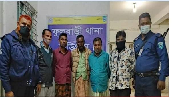 ফুলবাড়িতে ইউপি সদস্য সহ পাঁচ জুয়ারি আটকb কুড়িগ্রামের ফুলবাড়ীতে পুলিশ বিশেষ অভিযান চালিয়ে তাসের মাধ্যমে জুয়া খেলার সময় এক ইউপি সদস্যসহ ৫ জুয়ারীকে আটক করেছে পুলিশ। আটক পাঁচ জুয়ারীকে শুক্রবার সকালে কুড়িগ্রাম জেল হাজতে প্রেরণ করা হয়েছে। পুলিশ জানায়, গোপন সংবাদের ভিত্তিতে ফুলবাড়ী থানার এস আই ইমরান আহমেদের নের্তৃত্বে একদল পুলিশ বৃহস্পতিবার রাত ১১ টার দিকে উপজেলার কাশিপুর ইউনিয়নের কাশিপুর বাজারের আবুল কালাম আজাদের দোকানে অভিযান চালায়। এ সময় তাসের মাধ্যমে জুয়া খেলারত অবস্থায় ৪ হাজার ১১০ টাকা, এক সেট তাস ও এক ইউপি সদস্যসহ পাঁচ জুয়ারীকে হাতেনাতে আটক করা হয়েছে। আটককৃত জুয়ারীরা হলেন উপজেলার ধর্মপুর গ্রামের আবুল কাসেমের ছেলে ইউপি সদস্য রফিকুল ইসলাম (৪৩) একই গ্রামের জামাল উদ্দিনের ছেলে আবুল কালাম আজাদ (৩৯),মৃত জসমত আলীর ছেলে বনি আমিন (২৮),মৃত হায়পদ আলীর ছেলে গোলজার হোসেন (৪১) ও হায়দার আলী (৪৪)। পরে ফুলবাড়ী থানার এস আই ইমরান আহমেদ বাদী হয়ে আটক পাঁচ জুয়ারীর বিরুদ্ধে জুয়া আইনে মামলা দায়ের করেছে। ফুলবাড়ী থানার অফিসার ইনর্চাজ (ওসি) রাজীব কুমার রায় ঘটনার সত্যতা নিশ্চিত করে জানান,আটক জুয়ারীদের কুড়িগ্রাম জেল হাজতে পাঠানো হয়েছে।