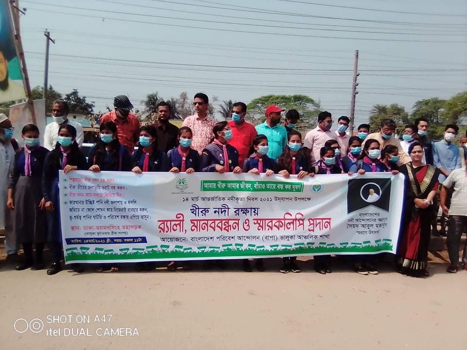 ময়মনসিংহের ভালুকায় খিরু নদী রক্ষার দাবিতে র্যালী ও মানববন্ধন কর্মসূচি পালন করা হয়েছে। রোববার সকালে আন্তর্জাতিক নদীকৃত্য দিবস উপলক্ষ্যে বাংলাদেশ পরিবেশ আন্দোলন (বাপা) ভালুকা আঞ্চলিক শাখার উদ্যোগে ঢাকা-ময়মনসিংহ মহাসড়কে বাসস্ট্যান্ড স্মৃতিসৌধ এলাকায় এসব কর্মসূচি পালন করা হয়। পরে উপজেলা নির্বাহী অফিসারের মাধ্যমে জেলা প্রশাসক বরাবর স্বারকলিপি প্রদান করা হয়।