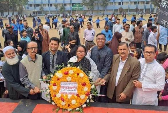 বিশেষ প্রতিনিধি মোঃ যুবরাজ খান সবুজ: আজ ২১শে ফেব্রুয়ারী ২০২৩ ইং, ৮ ই ফাল্গুন, ১৪২৮ বাংলা মহান আন্তর্জাতিক মাতৃভাষা দিবস উপলক্ষে সকল ভাষা শহীদদের প্রতি বিনম্র শ্রদ্ধা জানাতে মিরপুর প্রেসক্লাব এর সকল নেএীবৃন্দ। ১৯৫২ সালে রাস্ট্র ভাষা বাংলা করতে গিয়ে আমাদের বাংলাদেশের দামাল ছেলেরা রফিক,সালাম,জব্বার,বরকত আরো কতো মায়ের সন্তান তাদের বুকের তাজা রক্ত দিয়ে বাংলা ভাষা ছিনিয়ে এনেছিলো এই বাংলাদেশে। "আমার ভাইয়ের রক্তে রাঙ্গানো, একুশে ফেব্রুয়ারী আমি কি ভুলিতে পারি" এই শ্লোগানে মুখরিত হয়েছিল মিরপুর বাংলা স্কুল ও কলেজের মাঠে। আজ ২১ শে ফেব্রুয়ারি বিদ্যালয়ের প্রাঙ্গনে উপস্থিত ছিলেন সম্মানিত প্রিন্সিপাল জনাব মোস্তফা খোশনবিশ ও তার সহযোগীরা মিরপুর প্রেসক্লাব'র প্রতিষ্ঠাতা সভাপতি, গোলাম কাদের ও সাধারণ সম্পাদক এইচ এম জামাল উদ্দিন। মিরপুর প্রেসক্লাব এর সিনিয়র সহ-সভাপতি নাজমুল ইসলাম, সহ-সভাপতি মোসাঃ শামীমা আক্তার, সহ-সভাপতি মারুফ হায়দার, সহ-সভাপতি মুসা মিয়া,এ সময় আরো উপস্থিত ছিলেন যুগ্ম-সাধারণ সম্পাদক কাজী ওবায়দুর রহমান, সহ-সাংগঠনিক সম্পাদক কাজী শরীফ নেওয়াজ লালন, ক্রীড়া বিষয়ক সম্পাদক আলী আফজাল আকাশ, ধর্ম বিষয়ক সম্পাদক হাজী মোঃ হানজালা বেপারী, প্রচার ও প্রকাশনা সম্পাদক মোঃ শরিফুল ইসলাম সাহিত্য ও সাংস্কৃতিক বিষয়ক সম্পাদক মোঃ ইস্রাফিল হোসেন, সমাজ কল্যান বিষয়ক সম্পাদক - আনিছ লিমন, ত্রান বিষয়ক সম্পাদক - মেঃ জুয়েল হেসেন, সদস্য - মোশারেফ হোসেন মনা সদস্য - যুবরাজ খান সবুজ, সদস্য - জি এম বাহার,সদস্য - ইদ্রিস মাতবর, সদস্য - সুমন খান,শিশু শিল্পী - সুমাইয়া ইসলাম তানহা ও মোঃ ফাইয়াজ হোসেন সাদাফ।
