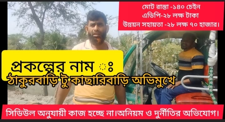 খুলনা জেলায় দাকোপ উপজেলার সুতারখালীতে এডিপি ও উন্নয়ন সহায়তার বাজেটে ঠাকুরবাড়ি থেকে কাছারিবাড়ি অভিমুখে ১৪০ চেইন রাস্তার কাজে দূর্নীতি ও অনিয়মের অভিযোগ উঠেছে। অভিযোগ সূত্রে সরেজমিনে অনুসন্ধান কালে স্থানীয় ড্রাইভার ভাইয়েরা বলেন," রাস্তার নীচে দেড় দুই ইঞ্চি বালু। ইটের ফাঁকা মাটি দিয়ে পুরন হচ্ছে।একটা করে ইজিবাইক চললে ইট ডেবে নীচু হয়ে যাচ্ছে রাস্তা। ইটের উপরে বালুর পরিবর্তে ব্যবহৃত হচ্ছে শুকনা মাটি।নাম প্রকাশ না করার শর্তে কেউ কেউ রসিকতা করে বলে ওটা মাটি নয় সিমেন্ট মাটি।রাস্তা জমাট বাঁধতে সহযোগিতা করবে" । গুনারী দাখিল মাদ্রাসার সুপার মোঃ হাবিবুর রহমান সরদার ক্ষোভে বলেন," রাস্তা যা হচ্ছে তা ভালই। বর্ষার দিনে হাঁটতে তো পারবো। আপনাদের লেখনির মাধ্যমে তা যেন বন্দ না হয়" । ৩ নং ওয়ার্ড মেম্বর মিহির মাঝি মুঠোফোনে বলেন," আমি সঠিক কিছু বলতে পারবো না। সচিব মাধব বালা সবকিছু জানেন, ওনার কাছে শুনেন । জনগণের কথা জানতে চাইলে বলেন, জনগণ ভালো বলে কবে "? ঠিকাদার মোঃ বদিয়ার শেখ মুঠোফোনে বলেন," জনগণ যা বলছে তা সত্য নয়। আমি রাস্তার নীচে নয় ইঞ্চি বালু দিয়েছি।রাস্তা তো শেষের পথে কেউ কোনদিন রাস্তার কাজে আপত্তি করেনি। আপনি এই প্রথম ফোনে জিজ্ঞাসা করলেন। রাস্তার যা বাজেট তার চেয়ে বেশি কাজ করেছি" । সচেতন মহল বলেন," রাস্তা যা হচ্ছে এরচেয়ে না করাই ভালো ছিল। বলে করবো কি? বলেও যা, না বলে ও তা। আসলে রাস্তার কাজে মোট বাজেট- ৫৬ লক্ষ ৭০ হাজার টাকা,১৪০ চেইন রাস্তা । একাজে অনিয়ম হচ্ছে। জনগন মুখ খুলে কিছু বলতে চাইছে না কি যেন একটা ভয়ে। এলাকার শিক্ষিত ও সচেতন সমাজ কাজ বন্দ রেখে বিষয়টা ক্ষতিয়ে দেখার জন্য এলজিইডি ইঞ্জিনিয়ার ও সম্মানিত ইউ,এন ও দাকোপ মহোদয়ের সুদৃষ্টি কামনা করেন" ।