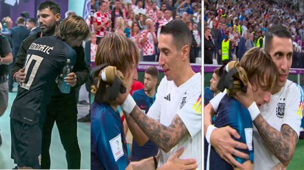 স্বপ্নভঙ্গের পর ডি মারিয়া-আগুয়েরো লুকা মদ্রিচকে জড়িয়ে ধরে সান্ত্বনা দেয়ার চেষ্টা